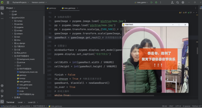 用python写拼图小游戏,拼出和妈妈的温馨合照;用代码编写跳动的爱心代码;用网页设计知识创作出表达心意的祝福网页......大数据、计算机应用专业学生巧用专业知识,在母亲节送给妈妈送出爱的礼物。该校软件学院计算机应用2232班王志洋在母亲节前一天在课堂上展示自己的作品,同学们纷纷表示也要尝试用代码为妈妈“敲”个小程序,给妈妈打电话道一句“辛苦了!”。