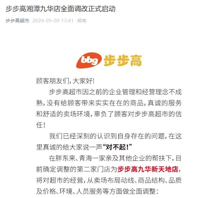 近日,步步高宣布湘潭九华店全面调改正式启动。 截图自官方微信公众号。