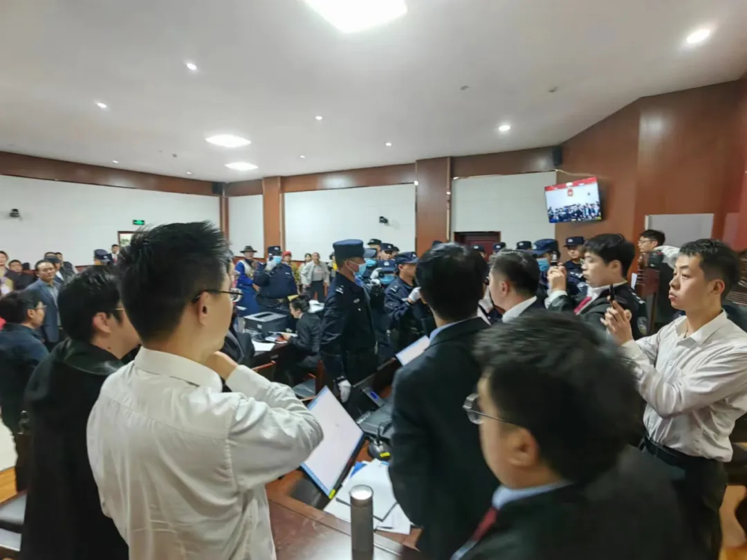 多名在场人员称,辩护人对着显示器拍照时,检察官告诉法警“律师在拍法官电脑”,法警随即围住审判席。与此同时,其他辩护人也围住审判席拿出手机拍照。