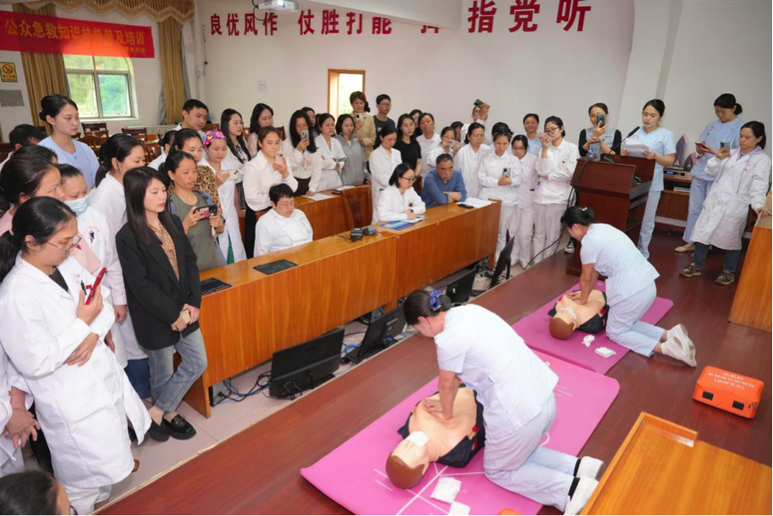 湘南学院附属康复医院也在近期开展了形式多样的庆祝“5·12”国际护士节活动。医院领导班子成员走访慰问了全院护理工作者,并送上诚挚的节日祝福;医院医护人员走进郴州一九八医院、华润三九(郴州)制药有限公司,开展了“现场救护-第一目击者行动”急救技能公益培训、“温暖守护 健康同行”义诊等活动,为人民群众的健康保驾护航。(蒋琴)