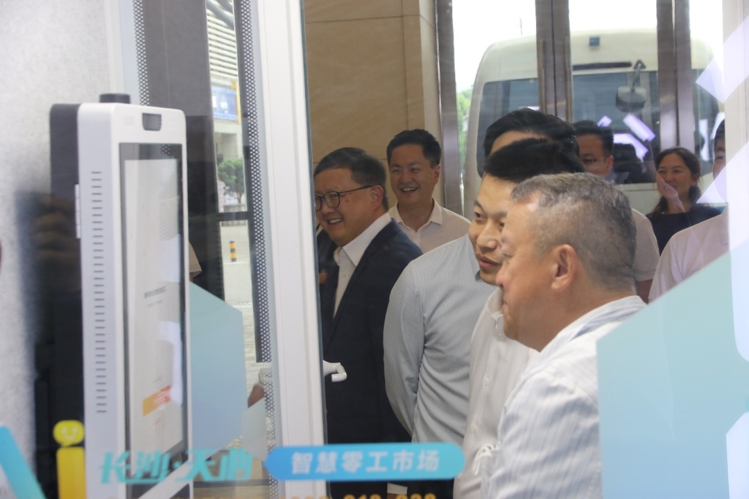 喻先生向考察团详细介绍了小翅科技新研发的“智能求职舱”,曾志伟先生现场体验了通过“智能求职舱”实现扫脸生成简历、AI自动面试、在线电子协议签署、智能排班与签到、薪酬自动结算的自助式、智能化就业。
