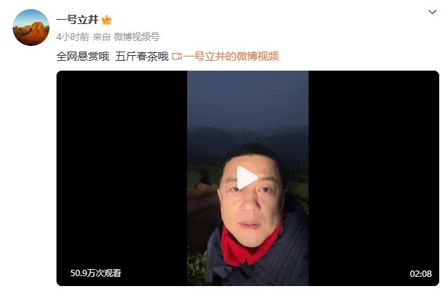 不过,2月29日,李亚鹏发博表示要全网悬赏:“听说我直播哭穷上了热搜了,现在就来一个全网悬赏,但凡有能提供十秒钟我直播哭穷视频的朋友,我们重赏——五斤春茶,但是一张图片加几个文字的不算。”