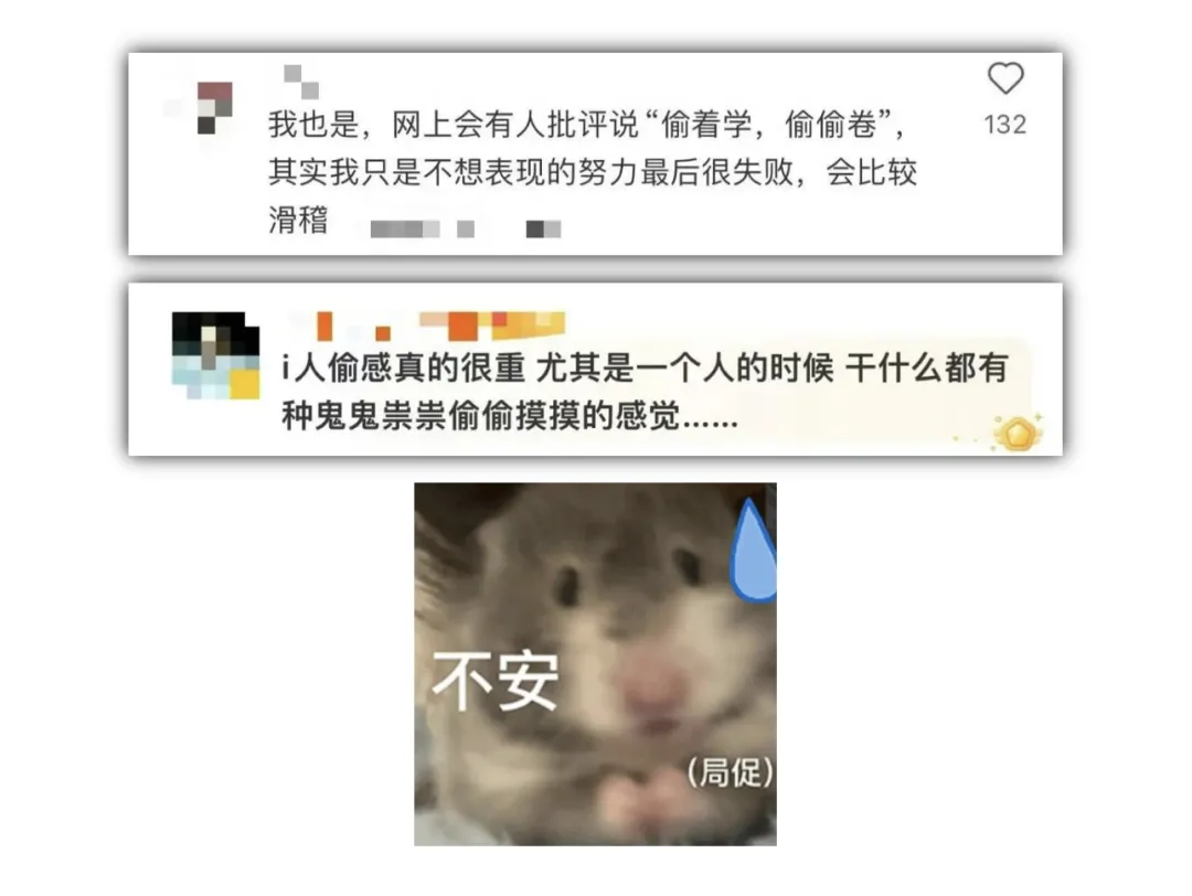 同样是“偷感”,有人是主动为之,主打一个“闷声干大事”;有人真心感到自卑和畏缩,总是担心事情没做好而被质疑被嘲讽。当然,也有不少人二者兼有,在或主动或被动的“偷感”中来回横跳。
