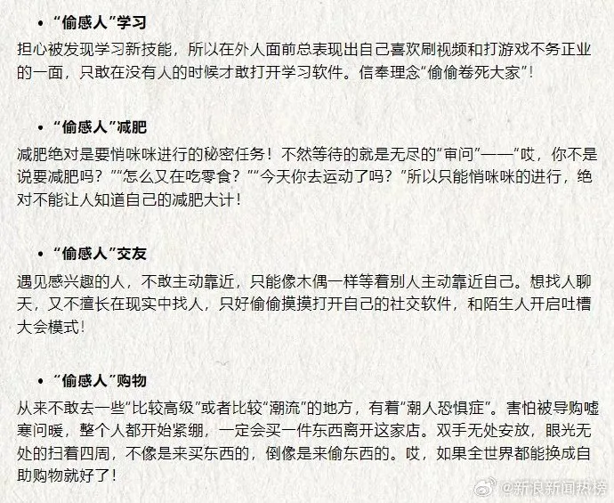 一些“偷感”行为。图片来源:新浪新闻热榜
