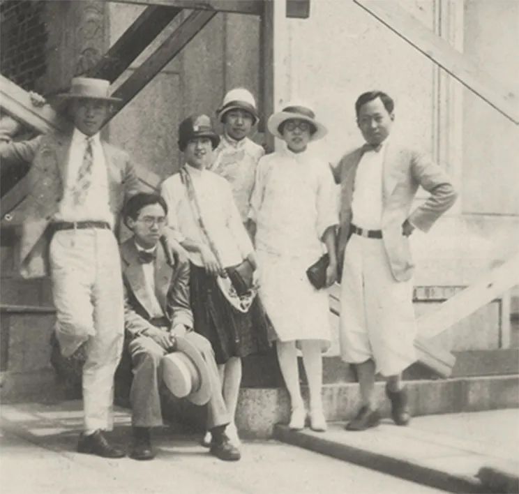 上世纪二十年代宾大部分留学生合影,从左至右杨廷宝、梁思成、林徽因、陈意、孙熙明、赵深 杨廷宝家属 图
