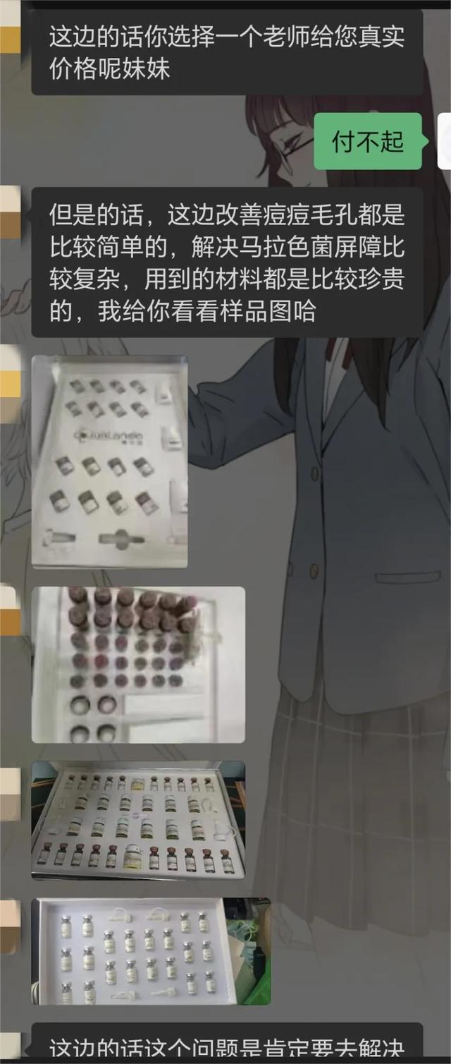 然而,这位“护肤指导”却每天都给小曾发成功案例,还说可以根据小曾的面部情况,为她私人定制专属祛痘方案。