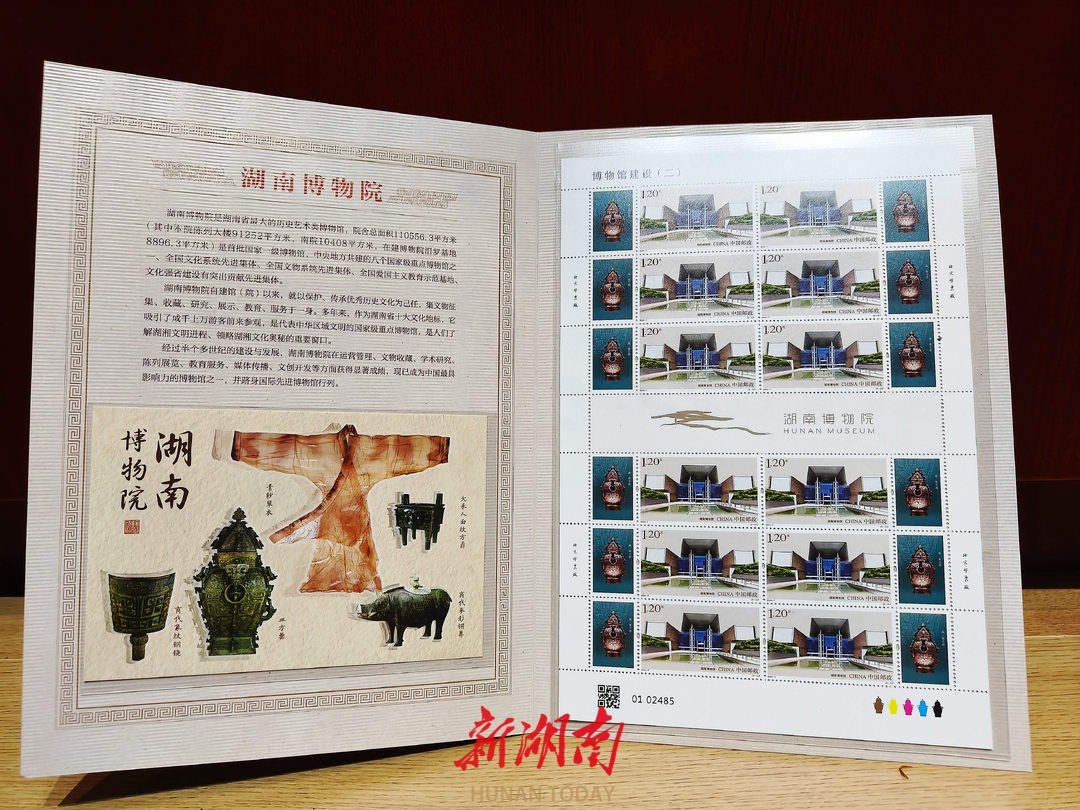 湖南日报·新湖南客户端5月18日讯(记者 龙文泱 摄影记者 李健 通讯员 徐婧彤)今天,由湖南博物院、中国邮政集团有限公司湖南省分公司主办的《博物馆建设(二)》特种邮票首发暨揭幕仪式在湖南博物院举行。这套特种邮票共有5枚,其中第4枚为湖南博物院,其余分别为中国考古博物馆、辽宁省博物馆、湖北省博物馆与三星堆博物馆,全套邮票面值6.00元,将发行670万套。