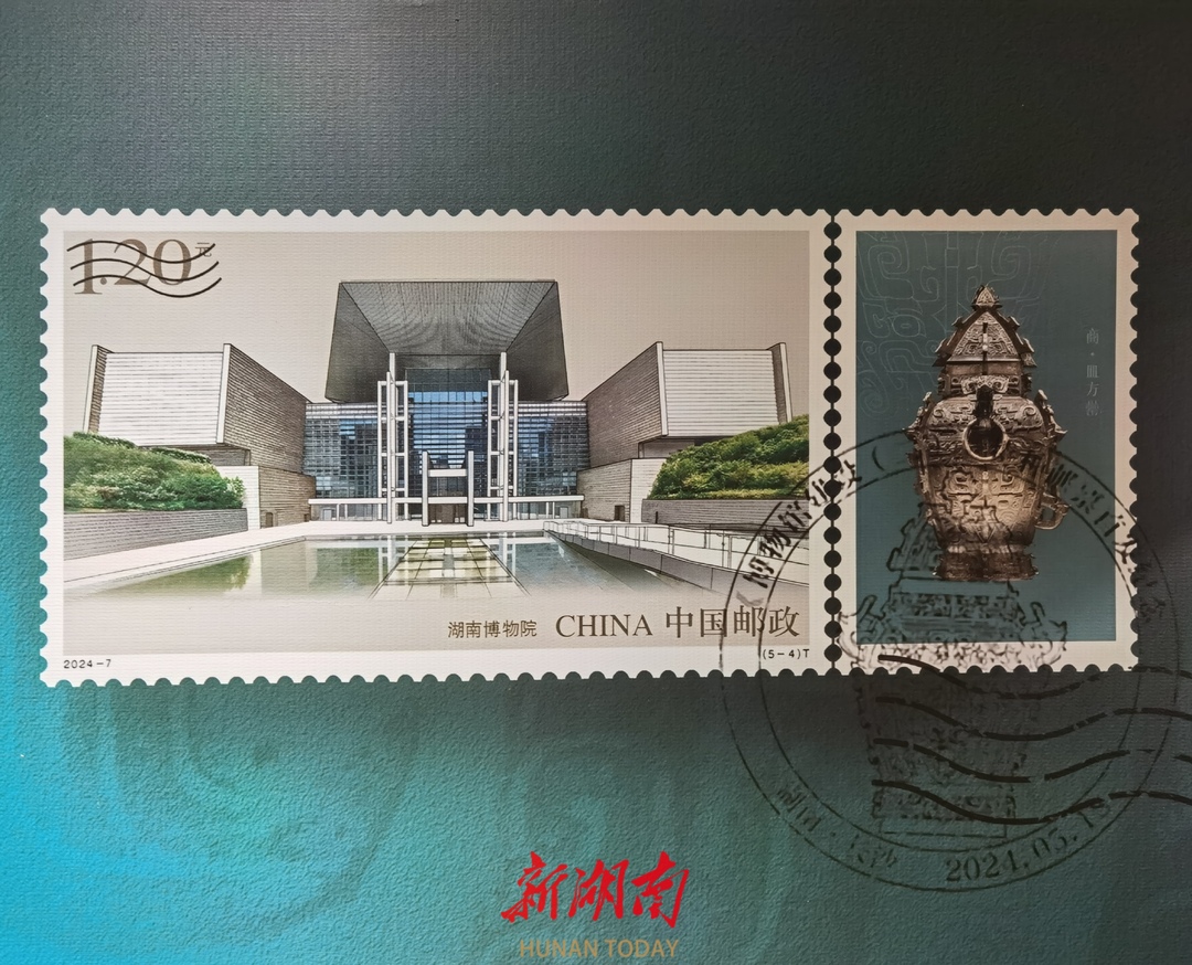 其中,第4枚邮票主票呈现的湖南博物院是湖南省最大的历史艺术类博物馆、首批国家一级博物馆,其馆藏文物以马王堆汉墓出土文物、商周青铜器、楚文物、历代陶瓷、书画和近现代文物等最具特色。该邮票附票所展现的文物是湖南博物院所藏的珍贵文物商代皿方罍。该方罍器型硕大,雄浑庄重,雕刻精美,富丽堂皇,是中国晚商青铜器鼎盛时期的代表之作,充分反映了中国青铜器铸造的高超技艺和摄人心魄的气势。