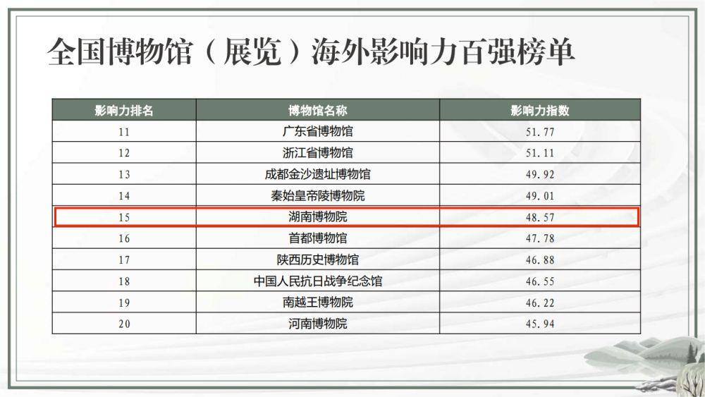 全国博物馆(展览)海外影响力“百强”出炉,湖南3家博物馆入选