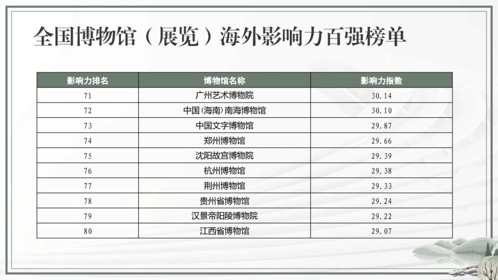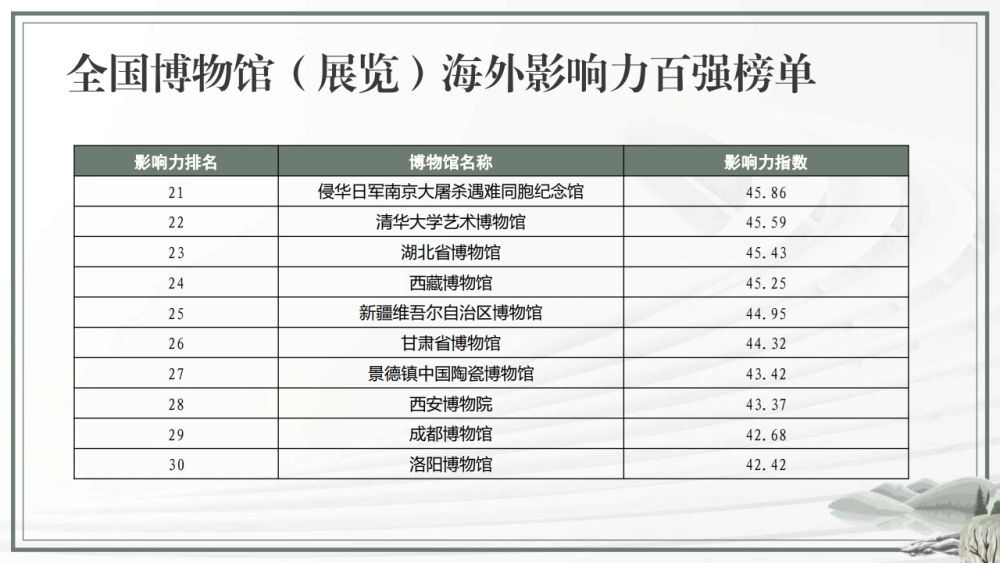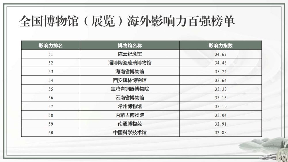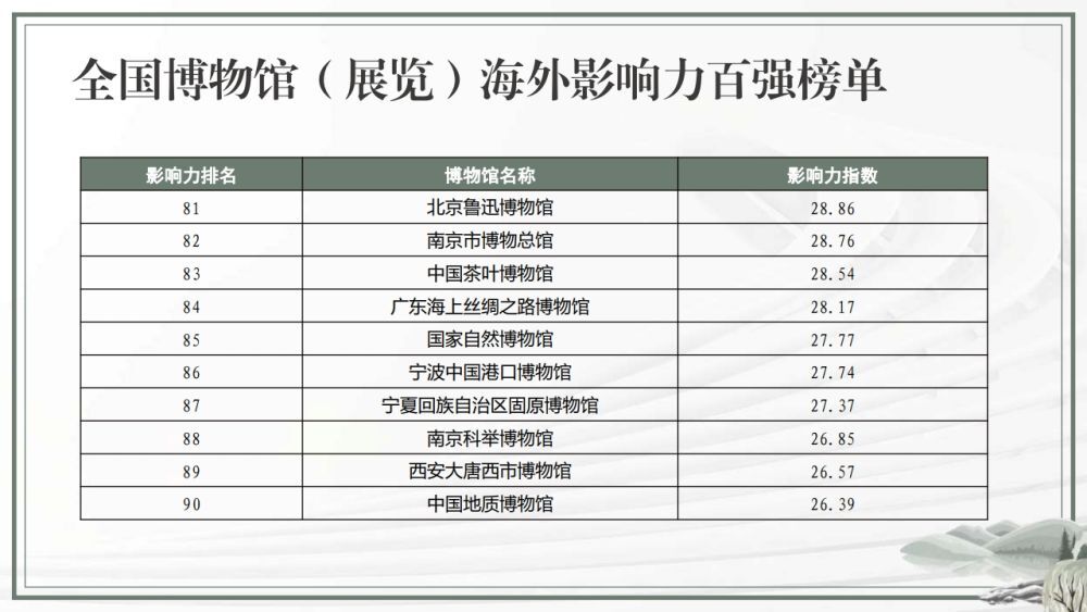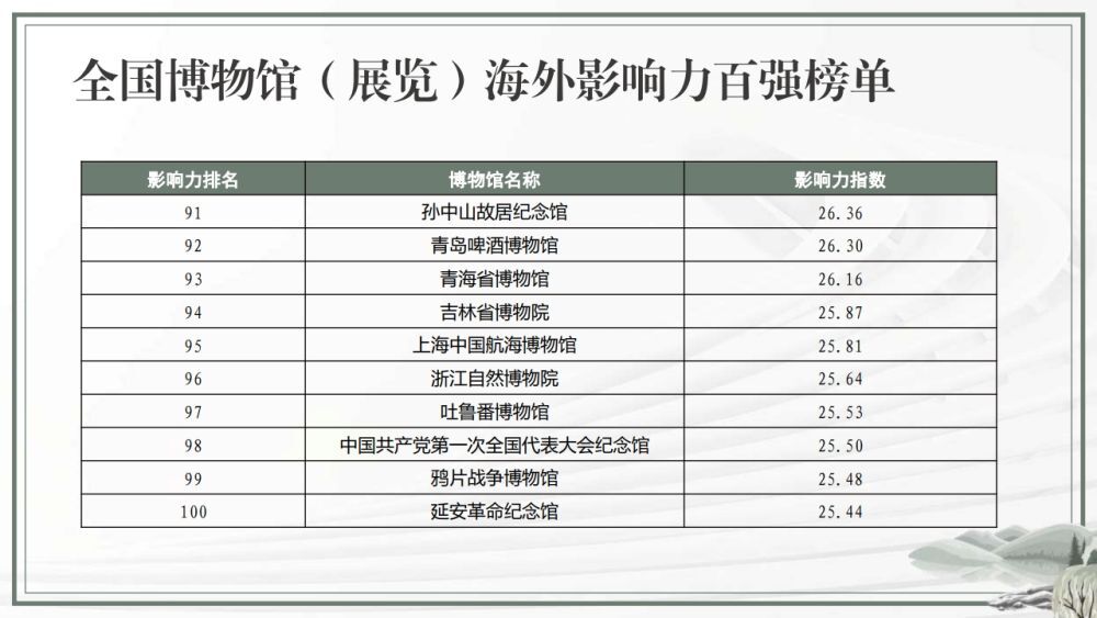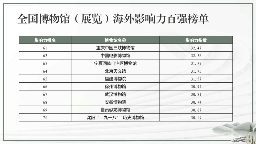 全国博物馆(展览)海外影响力百强榜单
