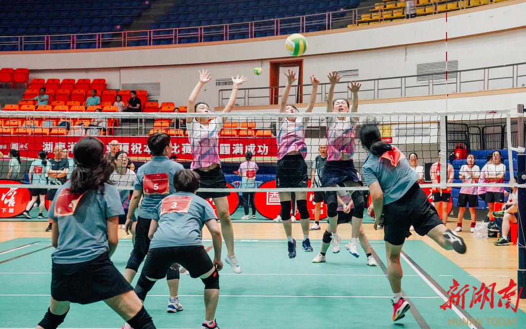 湖南省体育系统气排球比赛是我省品牌体育赛事之一,比赛旨在通过气排球的凝聚力和聚集性,充分发挥体育人在全民健身活动中的表率作用。开幕式后,各代表队迅速进入状态,展开激烈的比拼。其中一号场地,由省体育局代表队对决岳阳市代表队,前者凭借娴熟的技术与默契的配合,以2比0轻松拿下开门红。