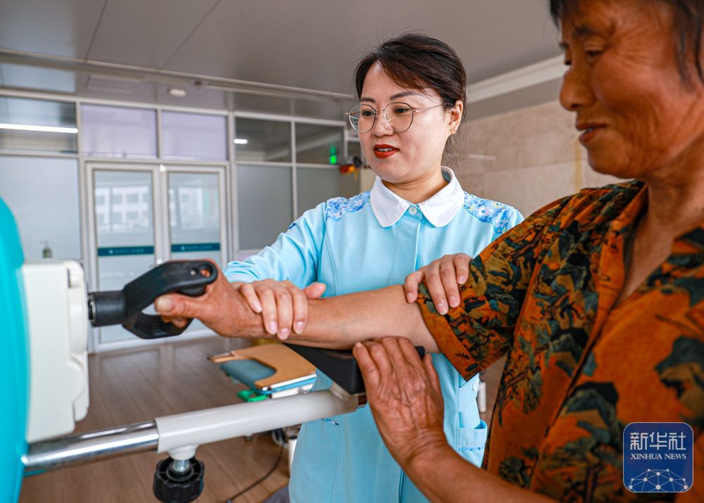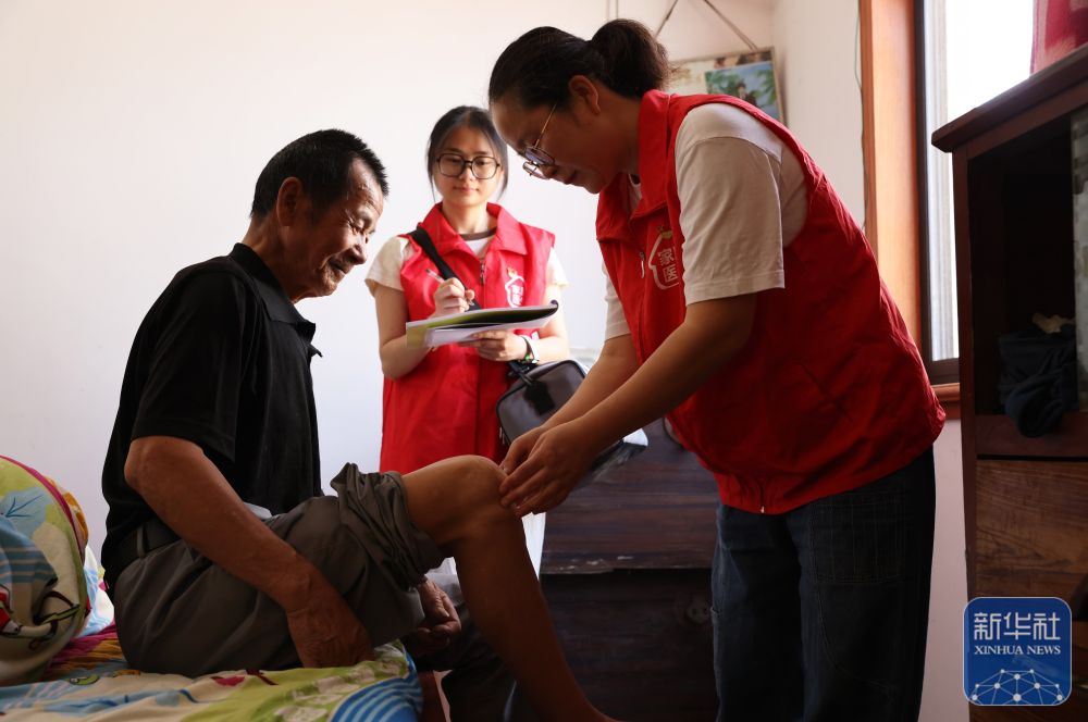 5月18日,在浙江省湖州市德清县乾元镇明星村,家庭医生上门为残疾老人检查身体。新华社发(倪立芳摄)