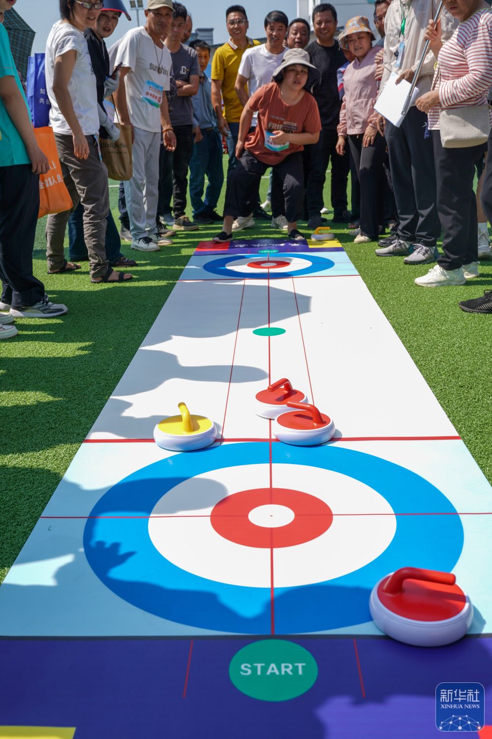 5月18日,福建省武夷山市残疾人运动员在进行旱地冰壶比赛。新华社发(邱汝泉摄)