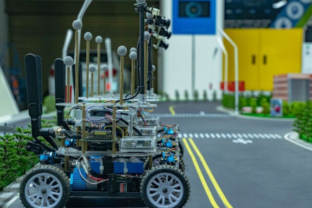 利用北斗卫星导航+惯性导航+5G通信等组合导航RTK技术,能实现自动驾驶的汽车加载线控底盘技术,实现车辆前进和倒退、转向及安全制动刹车……一辆智能网联汽车平稳安全地行驶在校园室外道路上,自动启停、识别障碍物、识别红绿灯、自动泊车等自动驾驶动作一气呵成。