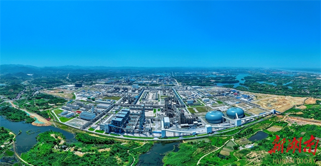 The photo above, taken on May 14, shows a magnificent view of the Sinopec Group Hunan Petroleum Branch transformation and development project of caprolactam industrial chain relocation and upgrading. With the world's largest single set in production capacity and being a world-class technologically leading caprolactam production and R&D base, the project has adopted Sinopec's new-generation caprolactam green technology with independent intellectual property rights. It boosts the traditional petrochemical industry to achieve high-end, intelligent, green, and integrated transformation and upgrading through industrial chain upgrading, product chain extension, and value chain enhancement, providing new paths and models for the heavy chemical industry along the riverside to advance green transformation and development. (Photo/Li Yijun and Peng Zhan)