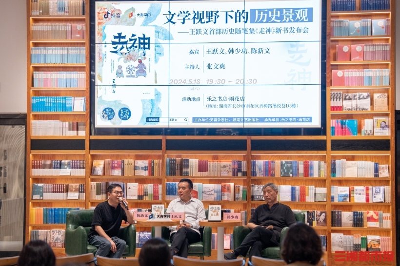 三湘都市报·新湖南客户端5月19日讯(全媒体见习记者 曾冠霖)5月18日晚,著名作家王跃文携首部历史文化随笔集《走神》做客长沙乐之书店雨花店,与著名作家韩少功,湖南文艺出版社兼芙蓉杂志社社长、主编陈新文就“文学视野下的历史景观”展开文学对谈。