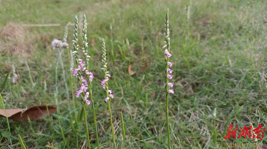 物种物候介绍:绶草被称为世界上最小的兰花。绶草开在路边的小坡上,退隐在其他植物的阴翳下,散射下的微光反而会让它的花开得更好。它的小花螺旋状自下而上排生,花瓣内侧粉白,外缘紫红,放在他处艳丽的花色,在它身上倒是恰到好处。