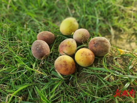 物种物候介绍:我从梅林经过时无意抬头,竟然第一次看见梅树上结了果子。这片梅林的树高大约在2-3米,树干是圆柱形,灰褐色中夹杂点绿色,表皮略粗糙,在树高50厘米左右打开,分出3-6个小枝干,叶子都稠密地长在枝条上方和枝头,有点像撑开的一把伞。地上掉落了好些梅子,有些是青绿色,熟的是澄黄中透着胭脂红,有的透着土褐色,大约3-4厘米,小小的个子圆嘟嘟很可爱。