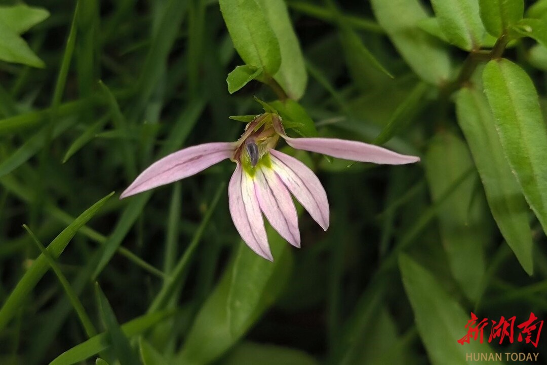 物种物候介绍:草地上瞥见一朵小小的野花。这朵花打破人们对于花朵的常规印象,看上去只有半边,如果再凑上半边,就像一朵小小的莲花了。这是它的名“半边莲”的由来。它的花果期5月至10月,在这个时间段,可以到河滩、田埂等潮湿地方去搜寻它淡粉或白色的花朵。