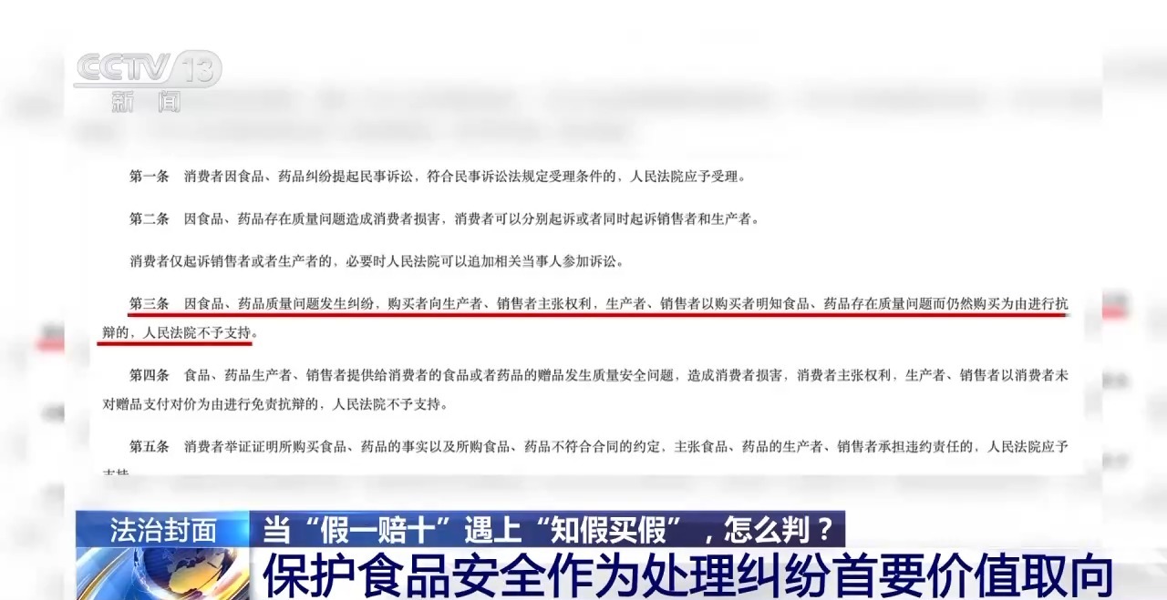 中国人民大学法学院教授 石佳友:知假买假包括打假,这并不能一概否认它的积极意义。造假和售假是源头。历来我们都是坚决打击食品领域的制假和售假,这是我们一贯的立法和司法政策。