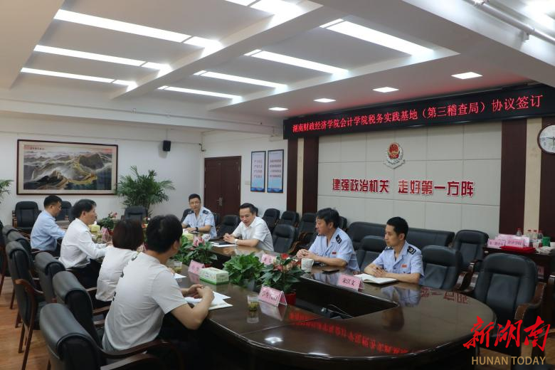 5月16日上午,湖南财政经济学院会计学院与国家税务总局长沙市税务局第三稽查局签订税务实践基地合作协议。
