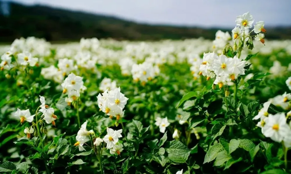 暑假回家时候,洋芋苗已经长高、长壮了,片片叶子墨绿,开起了美丽的洋芋花,一簇簇,有粉红、淡蓝、鲜黄的,也有紫色的、纯白的,真是“一地花海”。收麦季节,田里除草的母亲看着哪棵秧苗下的土裂开,就小心地从洋芋苗下面“揣”上几颗,做顿洋芋疙瘩,味道鲜美极了。