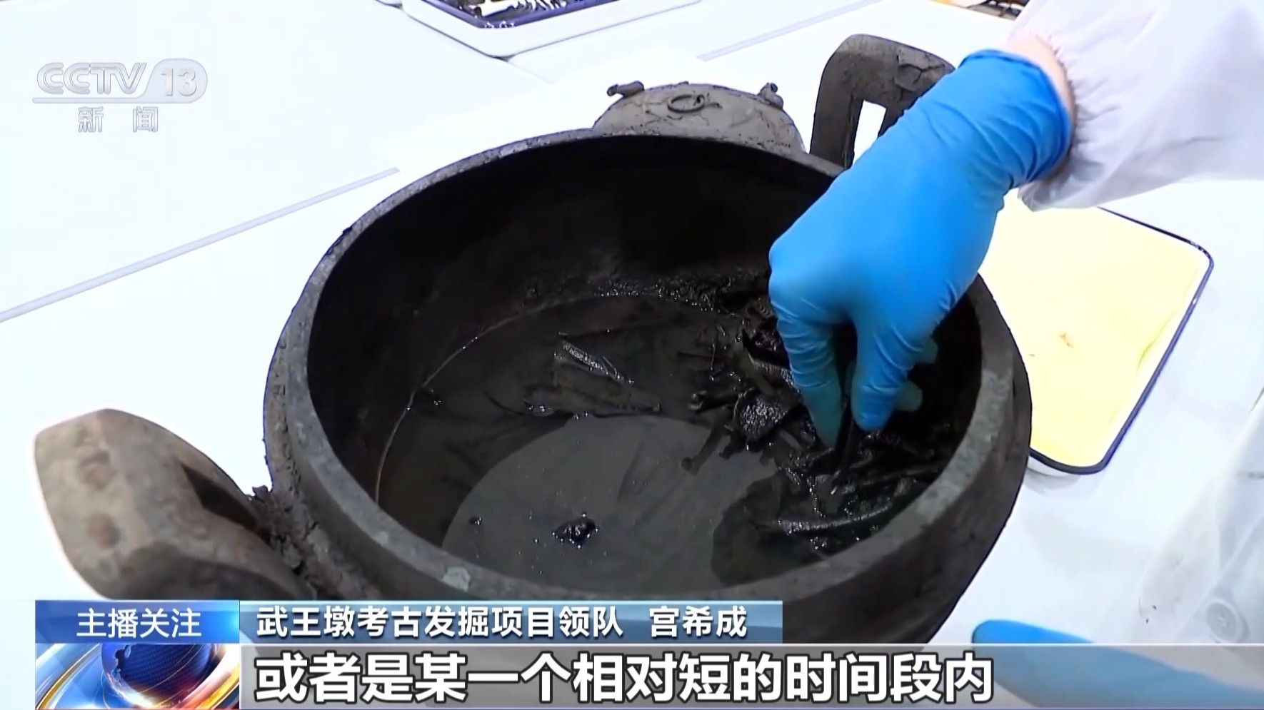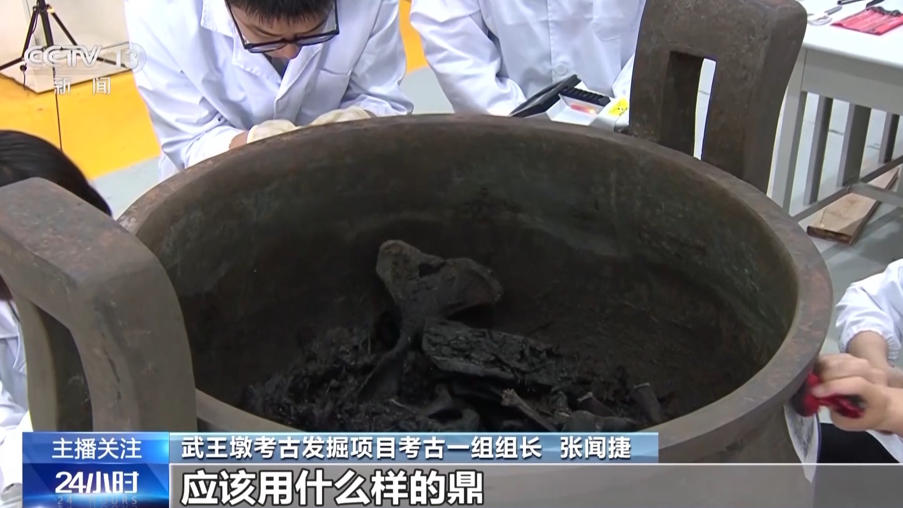 武王墩考古发掘项目考古一组组长 张闻捷:基本上它的年代就很精确,所以它可以成为战国晚期铜器的一个标准器,一个年代的标尺,让我们知道战国晚期这个铜器应该是长这个样子。对于楚王这个级别,应该用什么样的鼎,能够进一步把它完善出来。
