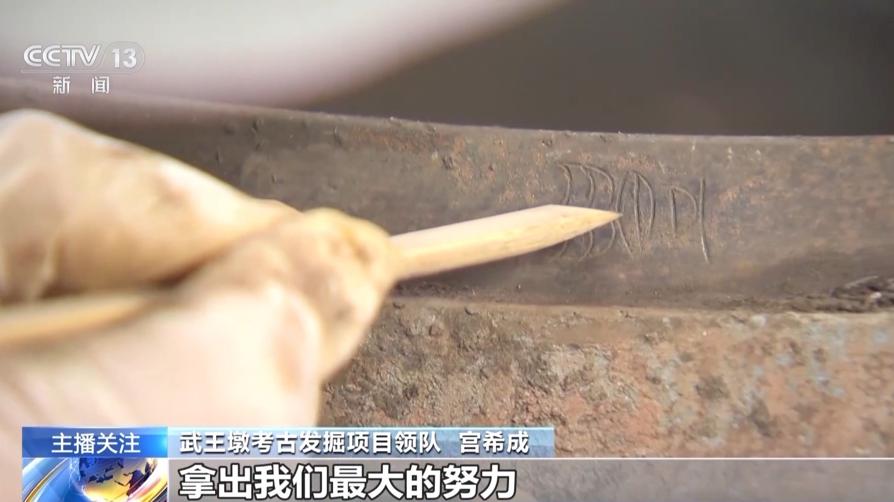 武王墩考古发掘项目领队 宫希成:感觉到责任重大,压力巨大。我们要时刻保持专注,拿出我们最大的努力,能够让保存了几千年的宝贵的遗产,能够在我们手里再展现在世人面前。