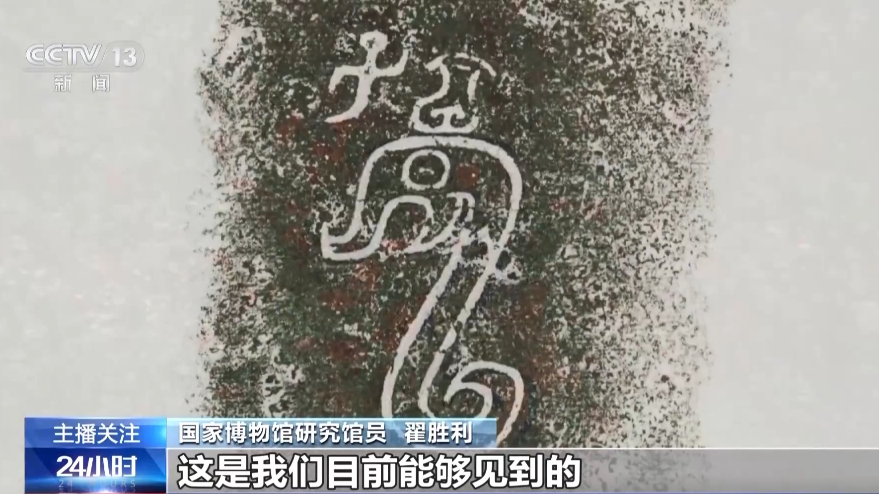 国家博物馆研究馆员 翟胜利:因为器内“子龙”二字的铭文而得名。“子”字比较小,是像个小孩子一样,两只胳膊伸开一前一后,好像在奔走。而“龙”字是一个典型的图案式的象形字,这是我们目前能够见到的青铜圆鼎上最早的“龙”字。