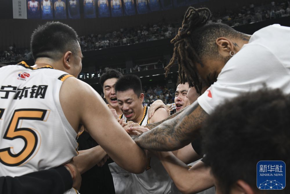 ↑辽宁本钢队球员在夺冠后庆祝。新华社记者 王菲 摄