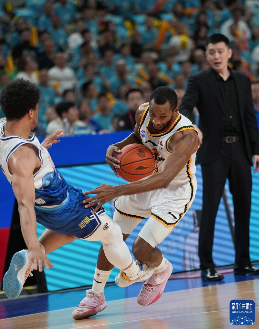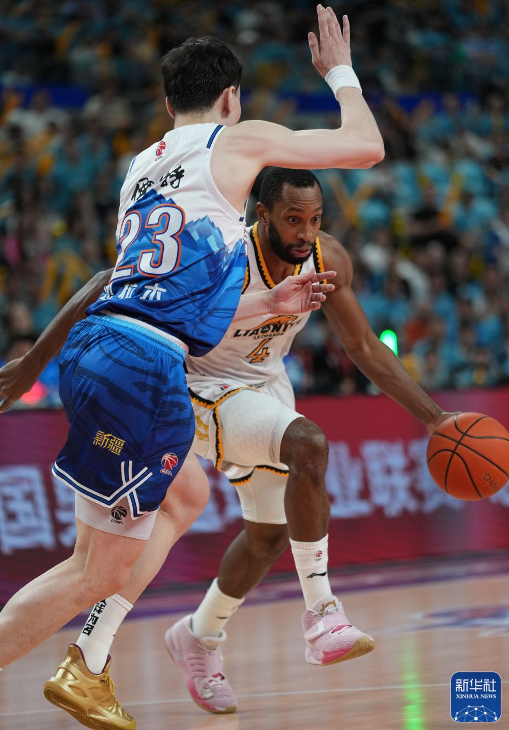 ↑辽宁本钢队球员弗格(右)在比赛中突破。新华社记者 孟永民 摄
