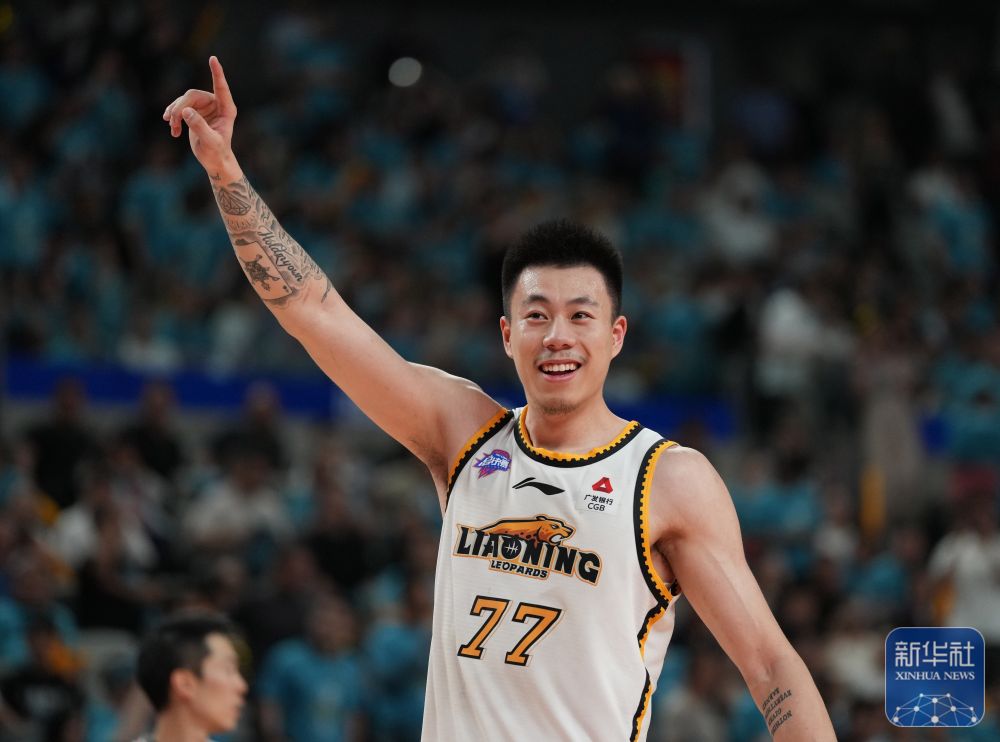 ↑辽宁本钢队球员张镇麟庆祝夺冠。新华社记者 孟永民 摄
