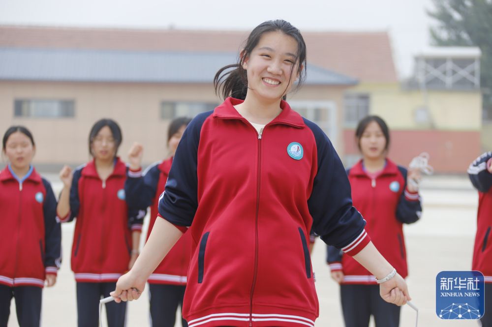 5月22日,河北省遵化市东新庄镇东梁子河中学高三学生在跳绳。