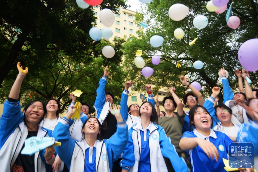 5月21日,湖南省郴州市嘉禾县第五中学高三学生在放飞气球。