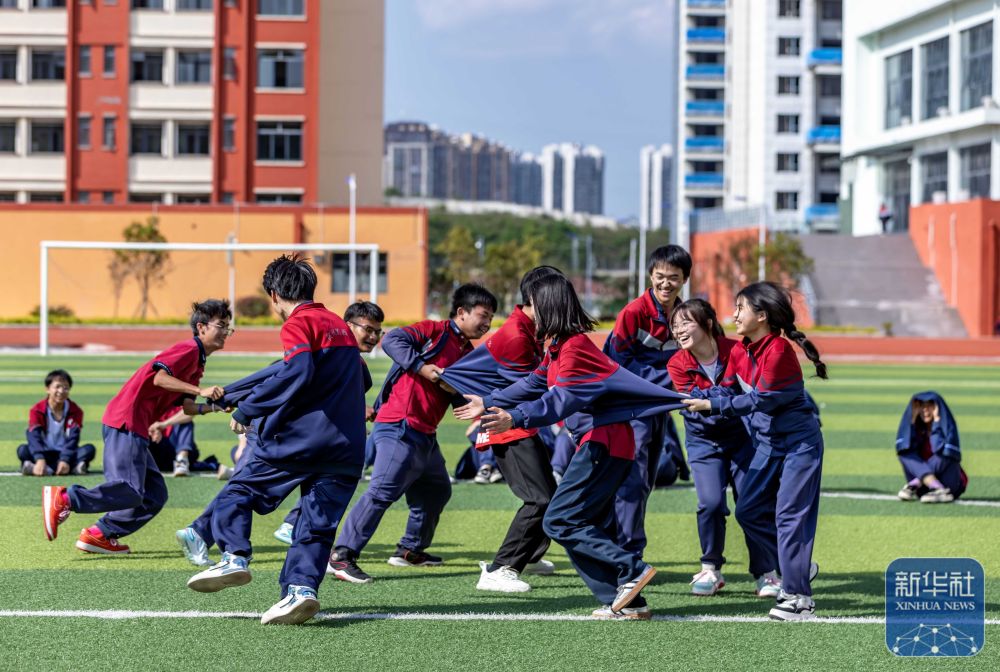 5月22日,学生在贵州省黔西第一中学操场参加趣味游戏。新华社发(范晖摄)