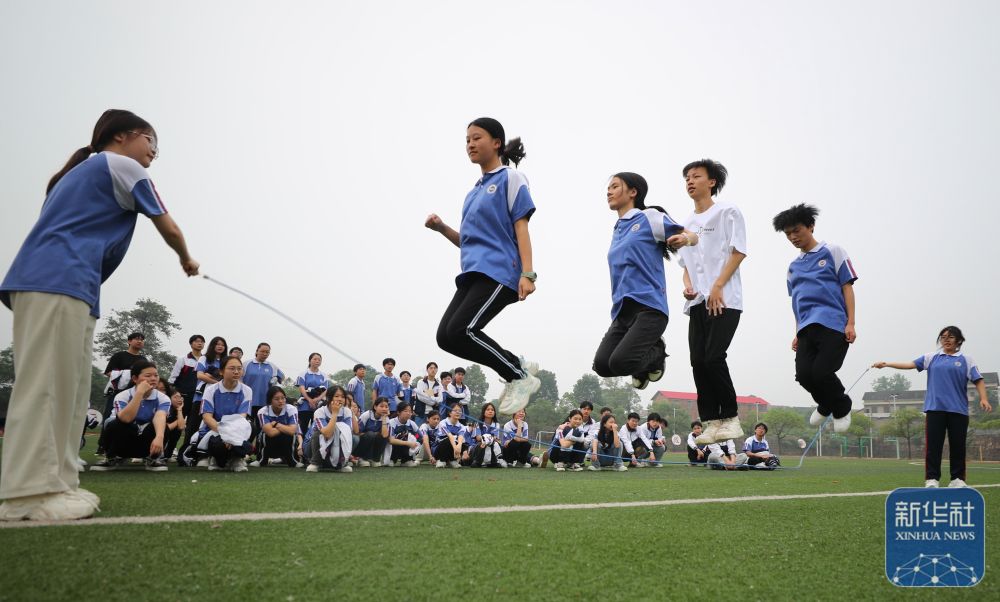 5月22日,湖南省衡阳市衡阳县第二中学的高三学生在跳绳。新华社发(曹正平摄)