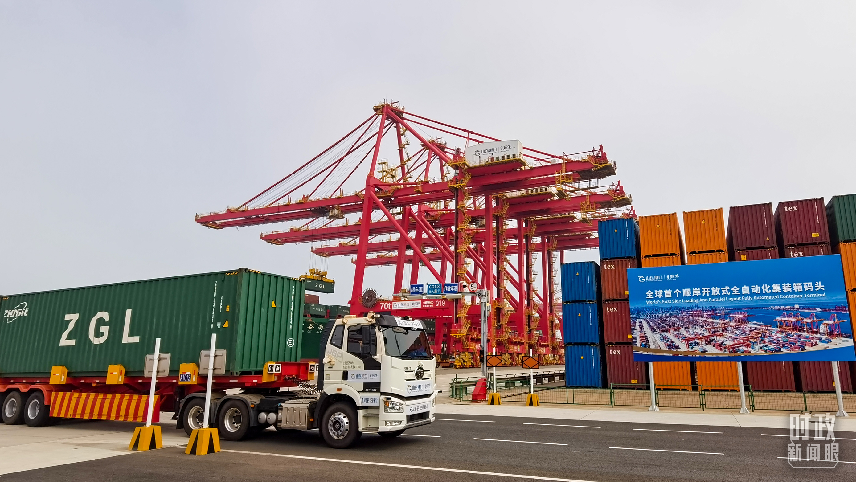 这里不仅是国家支持建设的大宗干散货智慧绿色示范港口,还建成全球首个顺岸开放式全自动化集装箱码头,单机效率提升50%,每年可削减碳排放9000多吨。