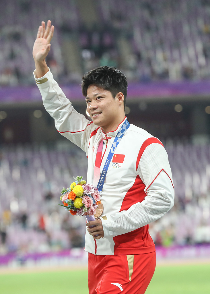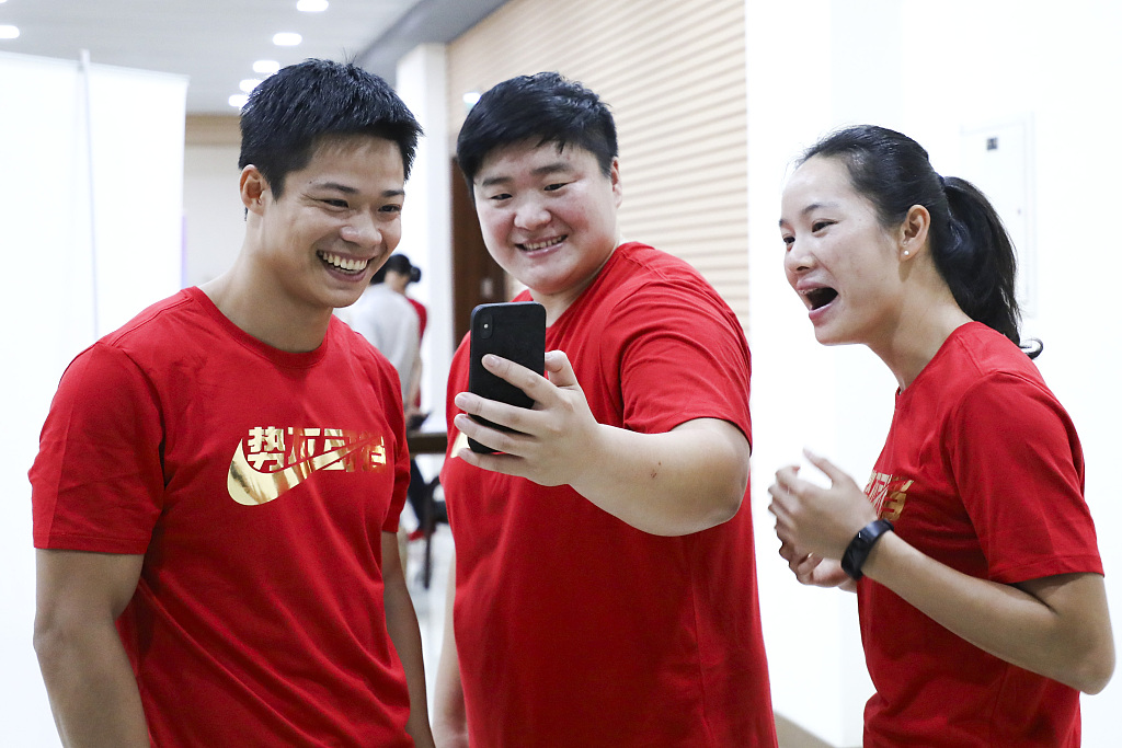 苏炳添、巩立姣和韦永丽(从左至右)。