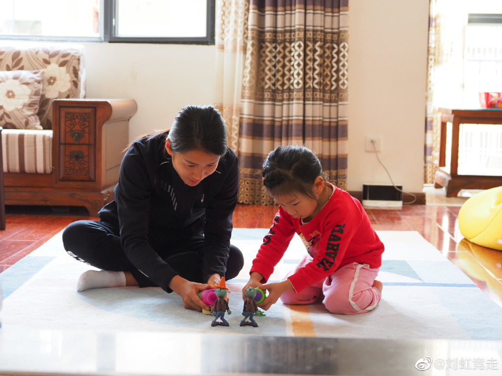 刘虹陪女儿玩耍。