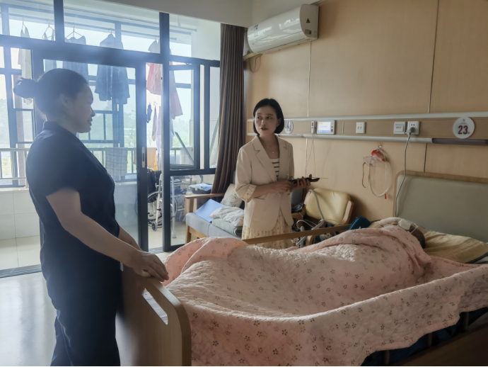 护理专家团队分别来到望城养老中心、乔口敬老院、靖港敬老院、新康敬老院、高塘岭敬老院、乌山敬老院、星城敬老院、桥驿敬老院等8家养老机构,对养老机构护理员、制度及流程、环境设备设施、药品管理、应急管理等方面工作开展多维度综合评估,并走访养老机构的工作人员及老人,详细了解在照护安全方面存在的困难及急需解决的问题。