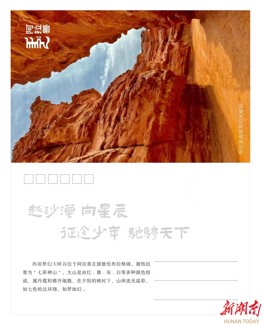 秦梓濡代表主办方发出号召:“穿越阿拉善的壮美画卷,从浩瀚无垠的沙漠到碧波荡漾的湖泊,从贺兰山的巍峨到古城遗迹的沉思,每一处都是自然与历史交织的奇迹,期待湖南万名“小辣椒”用好奇心的钥匙解锁!”