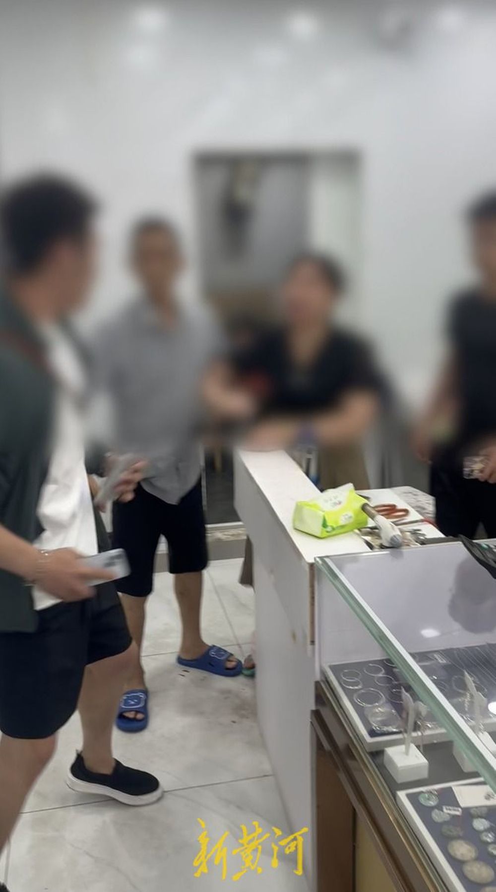 视频中,面对博主质疑,店主快速将黄金装入口袋,并上楼躲开博主,博主随即报警。警方到场后,疑似店主的父亲称是本人回收的黄金,店内一女子对民警说“(铁拳出击)陷害人。”