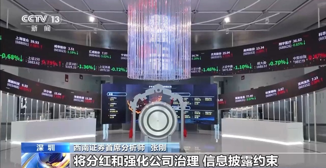 西南证券首席分析师 张刚:近期从中国证监会到交易所,一系列针对分红的规则,主要是在尊重上市公司自治基础上,将分红和强化公司治理、信息披露约束、挂钩控股股东减持、实施风险警示等制度安排相结合,以层层递进的方式进行强化。市场上不少此前原计划不分红的公司,也都提出了分红方案。通过交易所的专项活动,有800余家公司提出提质增效重回报中长期方案。这都将不断推动分红的具体落实。
