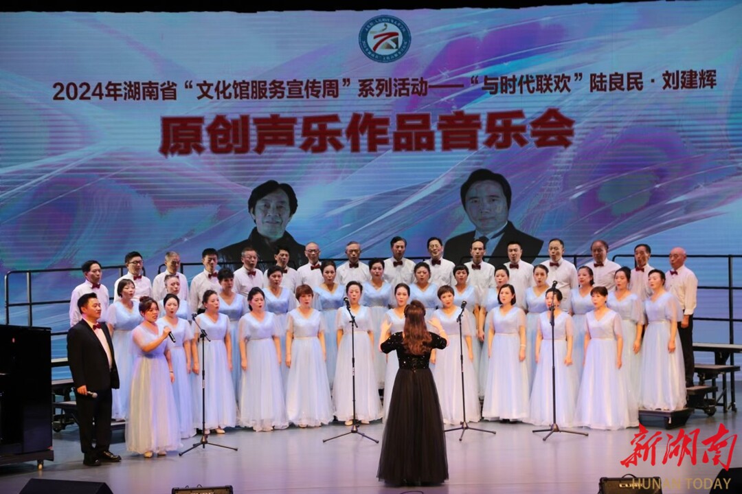 湖南日报·新湖南客户端5月27日讯(通讯员 常瑞芳)用音乐诠释我们的生活,用歌声唱响时代主旋律。5月23日晚,在湖南省文化馆群星剧场坐满了音乐爱好者们,“与时代联欢——陆良民·刘建辉原创声乐作品音乐会” 在此隆重举办,一首毛泽东少年时期所作的七绝《咏蛙》童声合唱拉开了帷幕。