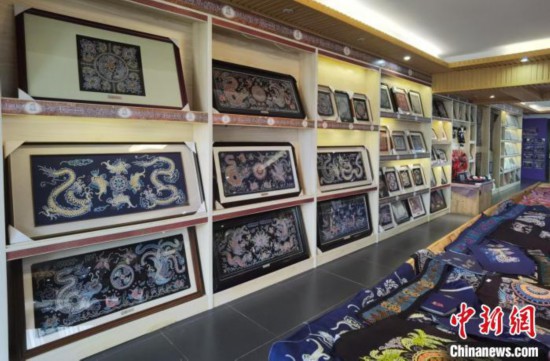 贵州省三都水族自治县非遗项目体验中心展出的马尾绣作品。张红艳 摄