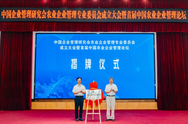 湖南农业大学党委书记陈弘和中国企业管理研究会会长黄速建共同为中国企业管理研究会农业企业管理专业委员会揭牌,并分别为专委会顾问委员、主任委员和副主任委员颁发聘书。农业企业管理专业委员会秘书处设在湖南农业大学,湖南农业大学商学院院长杨亦民被聘为专委会首届主任委员。陈弘表示,希望专委会引领农业企业管理领域科学研究,推动农业企业高质量发展。