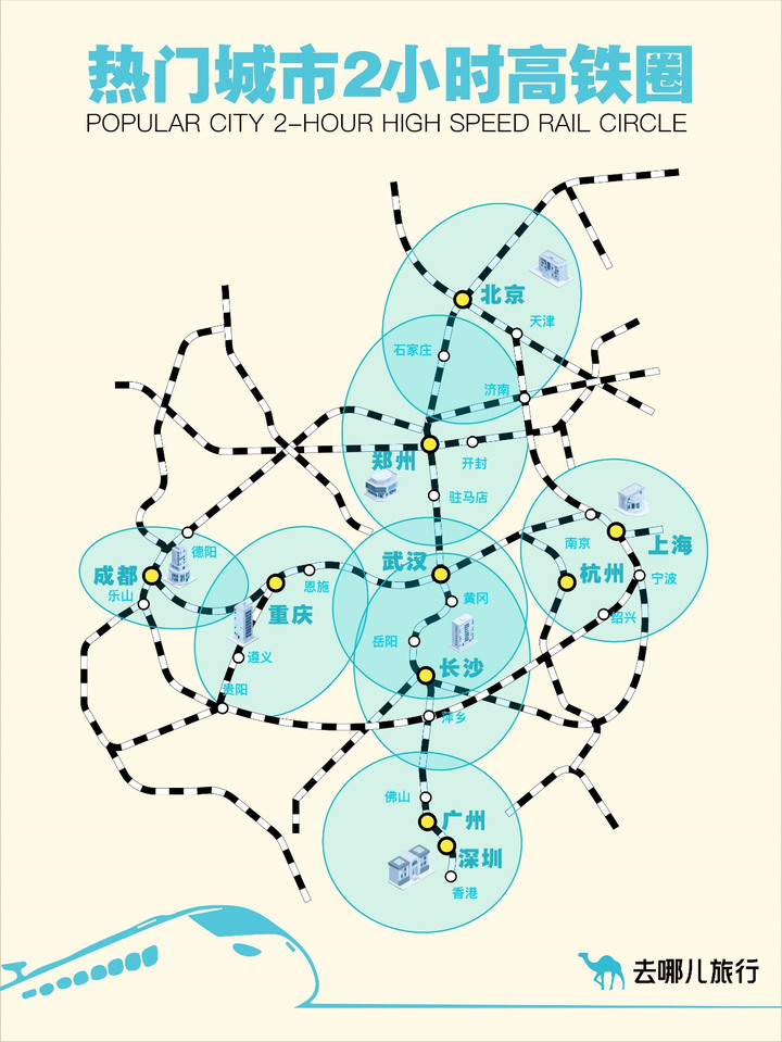 去哪儿火车票预约情况显示,2小时高铁圈内仍是旅客出游的主要目的地。北京2小时高铁圈内,热门目的地为天津、济南、石家庄、秦皇岛、大同;上海2小时高铁圈,热门目的地为杭州、苏州、南京、湖州、宁波。