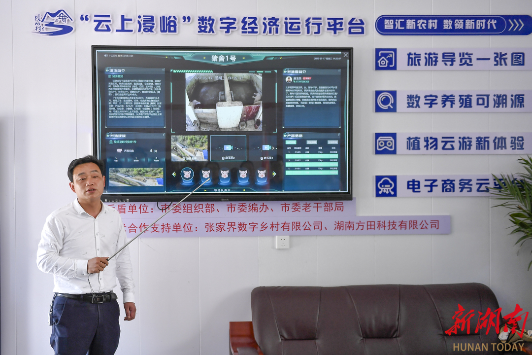 桑植县竹叶坪乡浸峪村,村支部书记高德军在介绍“云养殖”相关情况。 向韬 摄