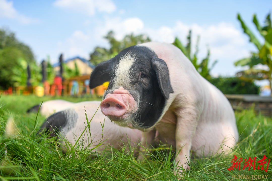 湘潭市沙子岭猪文化体验园,沙子岭猪在草坪上休息。湖南日报全媒体记者 傅聪 摄