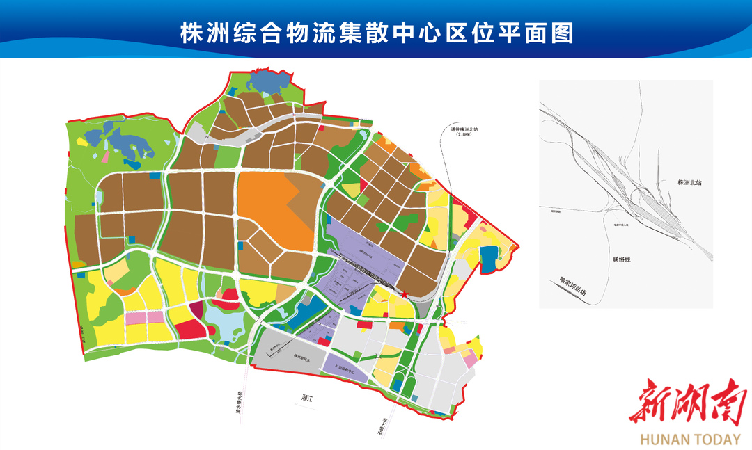 株洲综合物流集散中心项目位于石峰区清水塘新能源装备产业新城,总占地规模2096亩,由湘粤非总部、铁路物流园、株洲港、B保中心及铁路专用站五部分组成。